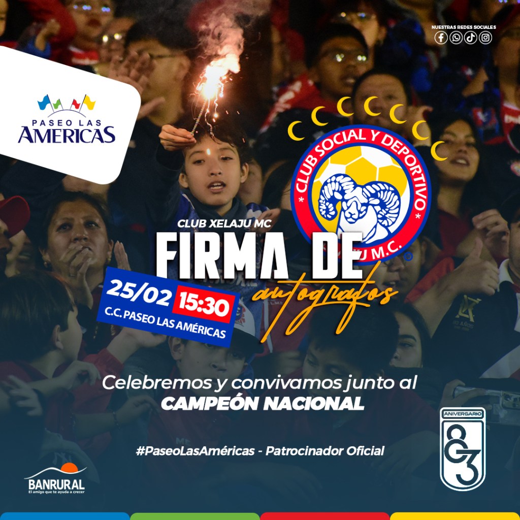 Como parte del aniversario el deportivo Xelaju MC hizo un llamado a la aficion para asistir a la firma de autografos para vivir a lo grande y celebrar su aniversario, este martes 25 de febrero a partir de las 15:30 horas, al Centro Comercial Paseo Las Américas