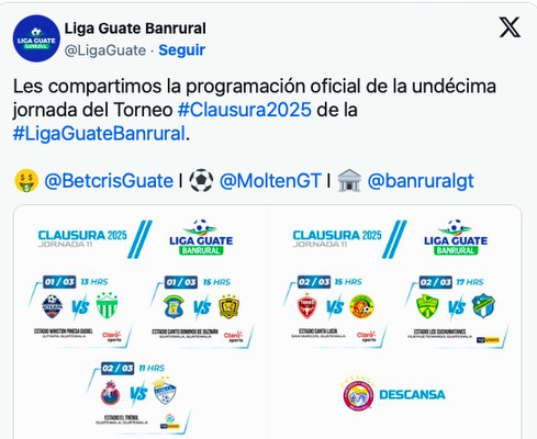 Una vez más los amantes del balompié guatemalteco serán testigos de cinco encuentros del más alto nivel, como parte de la undécima jornada del torneo Clausura 2025.