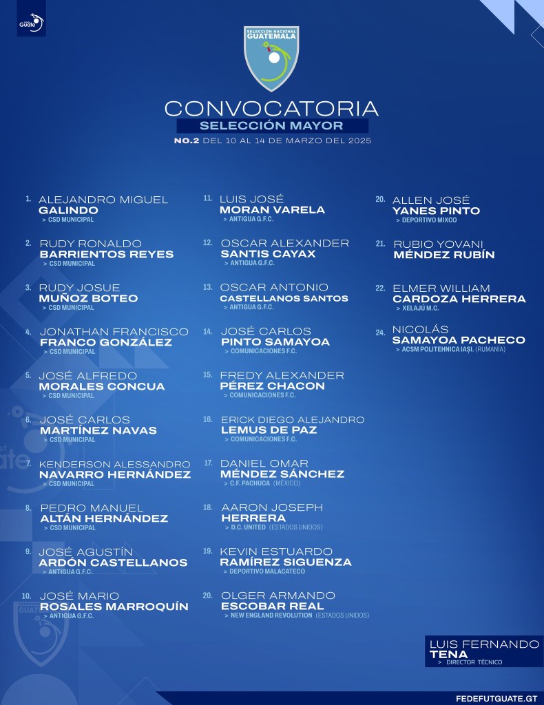 La convocatoria es para prepararse para el encuentro por lo que los futbolistas llamados tendrán jornadas intensivas en el Centro de Alto rendimiento CAR en zona 15 de la ciudad capital.