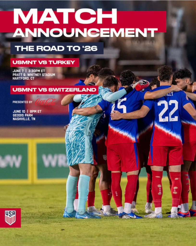 El equipo estadounidense se enfrentará a Turquía el 7 de junio en East Hartford, Connecticut; contra Suiza, tres días después (10 de junio), en Nashville, Tennessee, informó la Federación de Futbol de Estados Unidos.