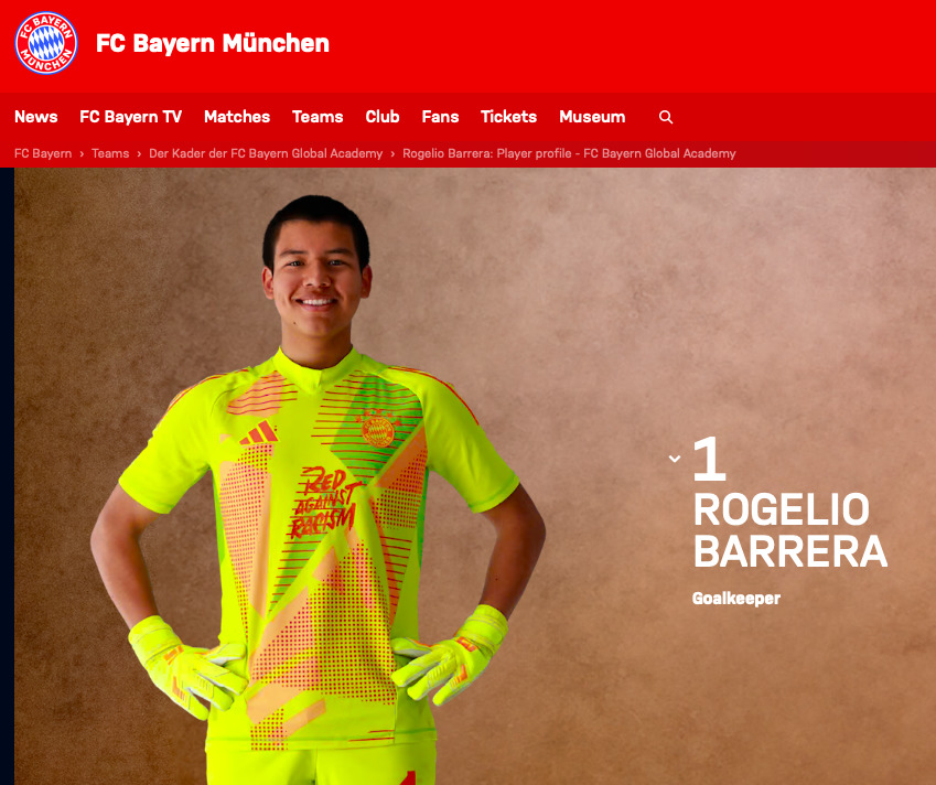 Se trata de Rogelio Barrera, portero que actualmente se desempeña en el U18 del Bayern Global Academy. Es elegible para los estadounidenses, ya que nació allí en el año 2007, el 19 de marzo.