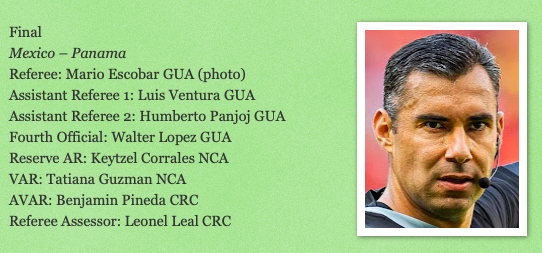 La Concacaf ha valorado los avances del referato nacional y nombró en la final a dos centrales, Mario Escobar y Walter López, quienes han tenido buenas actuaciones en torneos de selecciones y clubes de la Confederación, por lo que tienen alta posibilidad de ser tomados en cuenta para el Mundial 2026. La Confederación también valoró el gran trabajo de los asistentes Luis Ventura y Humberto Panjoj, complementado de perfecta forma el equipo de trabajo de Mario Escobar.