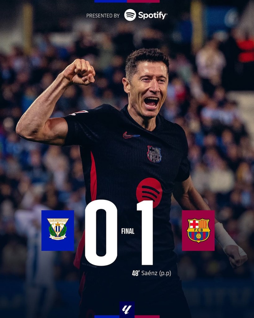 El Leganés volvió a complicar al Barcelona y estuvo cerca de arruinarle su paso invicto en 2025, peor esta vez la suerte sonrió al equipo catalán que se impuso 0-1 gracias a un autogol para mantener su ventaja como líder de LaLiga, con lo que da otro paso firme para ganar el título.