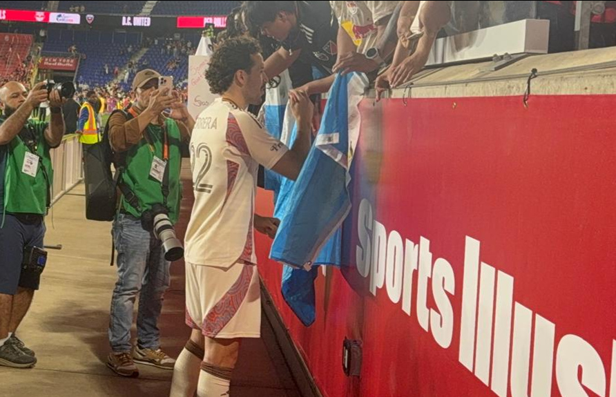 Al finalizar el encuentro, el defensor de D.C. United, Aaron Herrera, se acercó a las gradas donde lo esperaban varios aficionados guatemaltecos. Con una gran sonrisa, firmó banderas de Guatemala y camisetas mientras se tomaba fotos y compartía unos minutos con la comunidad chapina que se hizo presente en el Sports Illustrated Stadium.