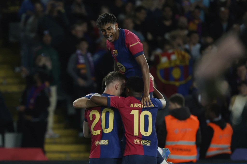 La victoria en casa le dio al club catalán una ventaja de siete puntos sobre el Real Madrid, que visita al Getafe el miércoles, Barcelona y Madrid se enfrentarán en la final de la Copa del Rey el sábado en Sevilla.