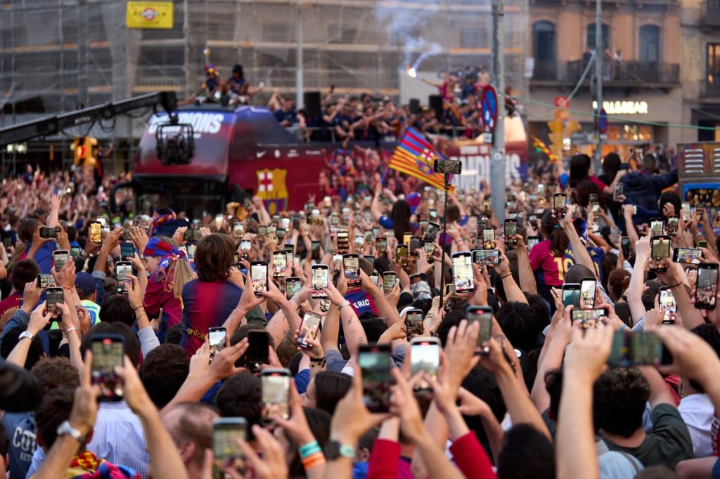 Jugadores y cuerpo técnico se subieron a un bus descapotable y recorrieron las calles de Cataluña en una caravana repleta de cánticos, banderas y euforia blaugrana.