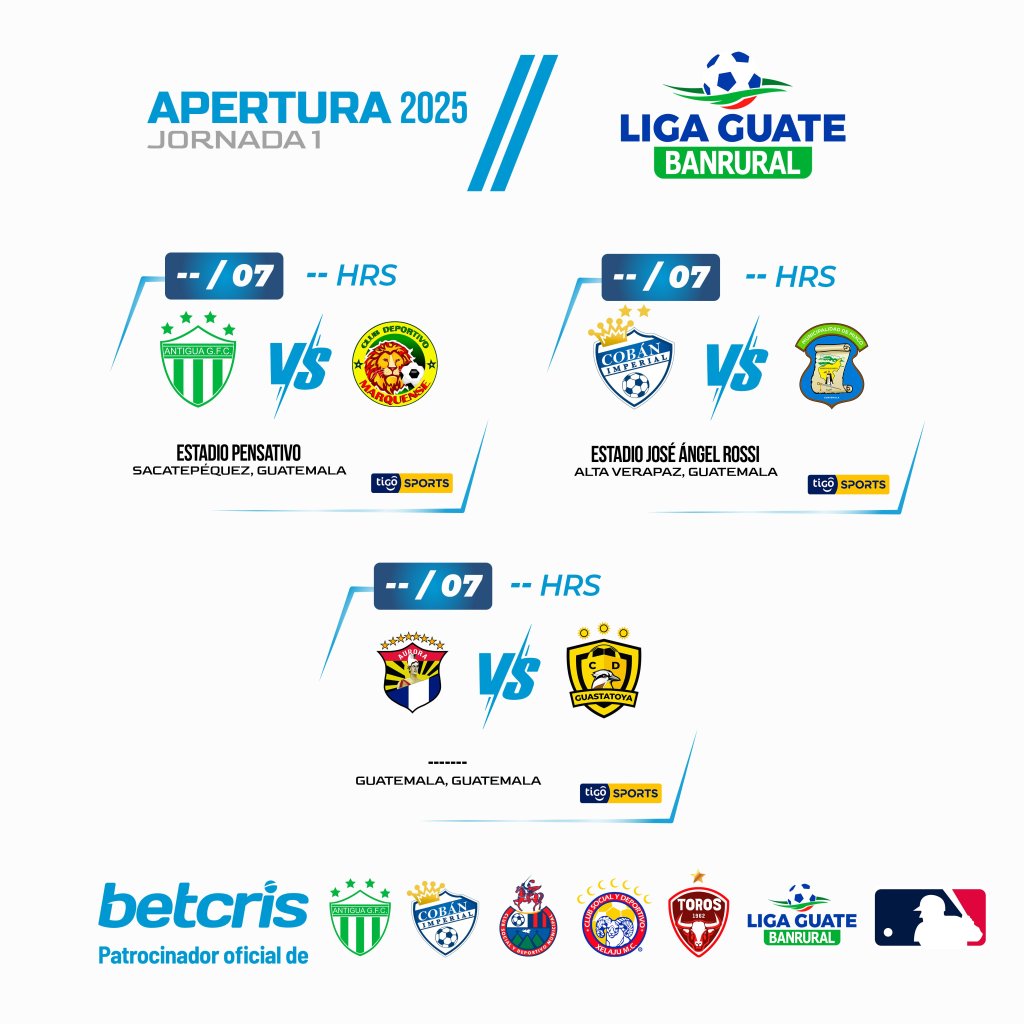 🇬🇹 Les compartimos los emparejamientos de la primera jornada del Torneo Apertura 2025 de la Liga Guate.