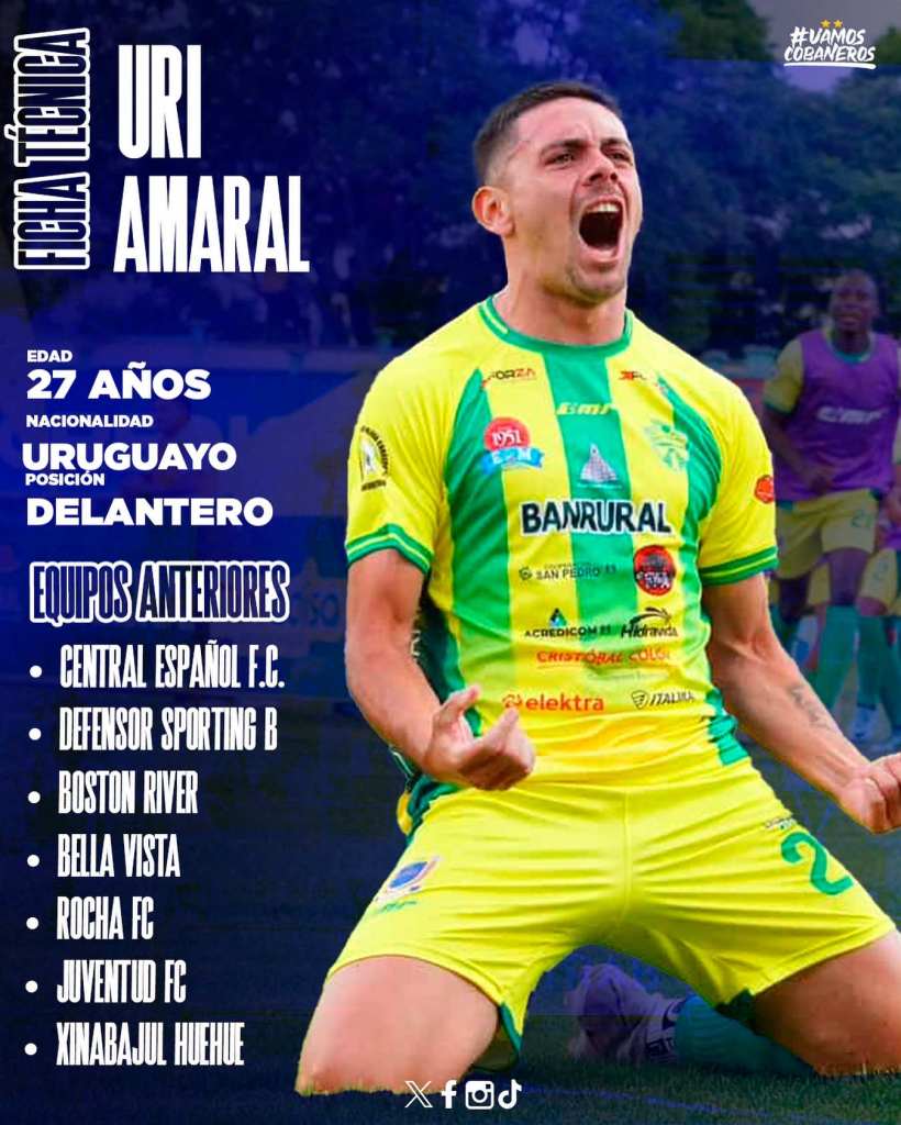 «Tu garra charrúa se une a la pasión cobanera», fue el mensaje que acompañó la emotiva bienvenida en redes sociales. Y no es para menos: Amaral, de 27 años, ya conoce el terreno, luego de haber defendido los colores de Xinabajul durante la temporada pasada. En el Apertura 2024 marcó cuatro goles y mostró destellos de su potencia ofensiva, aunque en el Clausura se fue sin anotar.