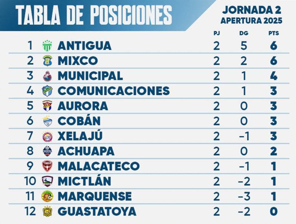 Por otro lado, Antigua GFC y Deportivo Mixco han iniciado con paso firme, ganando sus dos partidos y mostrando credenciales serias para ser protagonistas. Mientras tanto, equipos tradicionales como Municipal y Comunicaciones siguen construyendo su camino, conscientes de que en este torneo no se puede regalar ni un solo minuto.