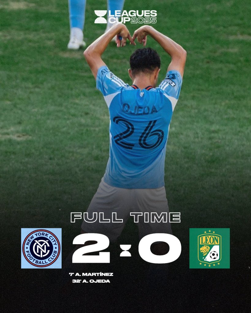 New York City FC fue contundente y lo dejó claro desde el minuto uno: en esta Leagues Cup no hay margen para la duda. Con un sólido 2-0 en la Red Bull Arena, el cuadro neoyorquino puso contra las cuerdas al Club León, que ahora depende de un milagro para avanzar en la Fase Uno.