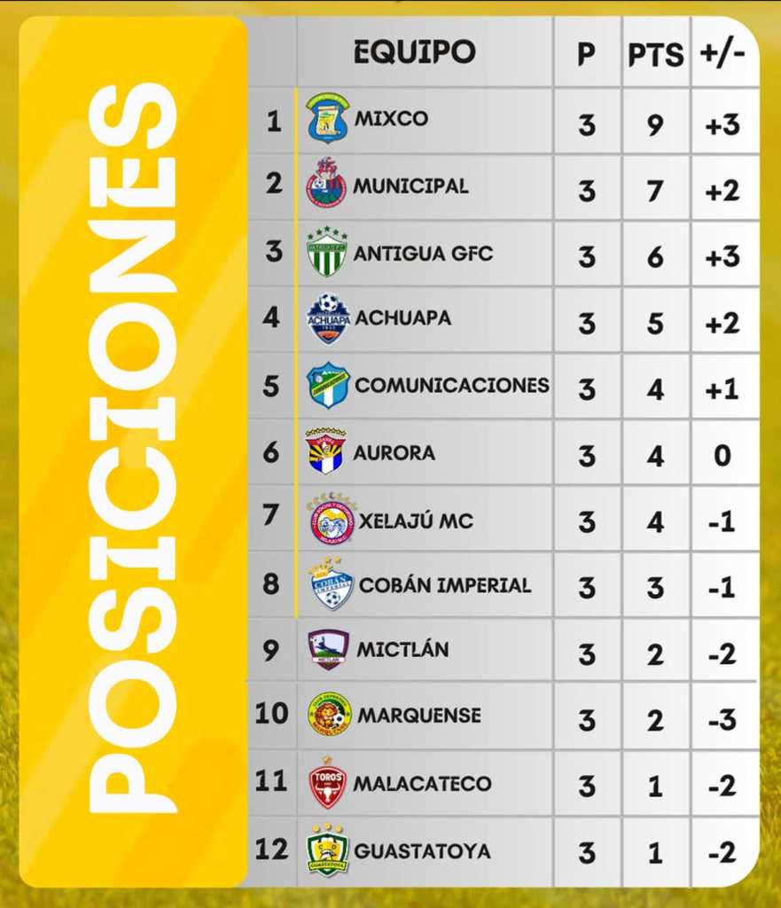 - Mixco (9 pts) seguirá líder con victoria o empate, siempre que Municipal y Antigua no ganen.