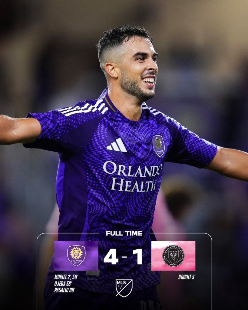 Fue una fiesta morada, Luis Muriel brilló con un doblete y Martín Ojeda firmó un gol y una asistencia para liderar la contundente victoria 4-1 del Orlando City sobre un Inter Miami sin Lionel Messi.