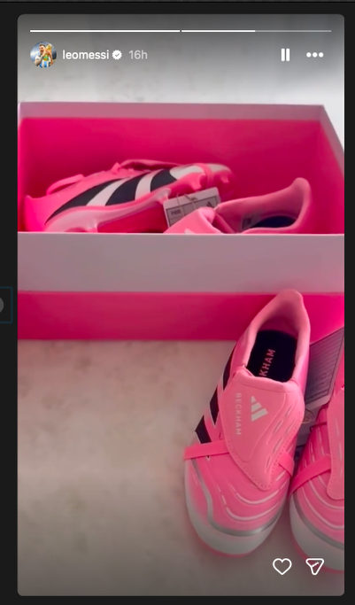 Lionel Messi vuelve a mezclar talento y estilo dentro y fuera de la cancha. La estrella del Inter Miami compartió en su Instagram un regalo muy especial de su jefe en el club, David Beckham: las nuevas Adidas Predator 25 en un vibrante color rosa, un guiño a la icónica versión que Beckham lució en 2011 tras el nacimiento de su hija Harper.