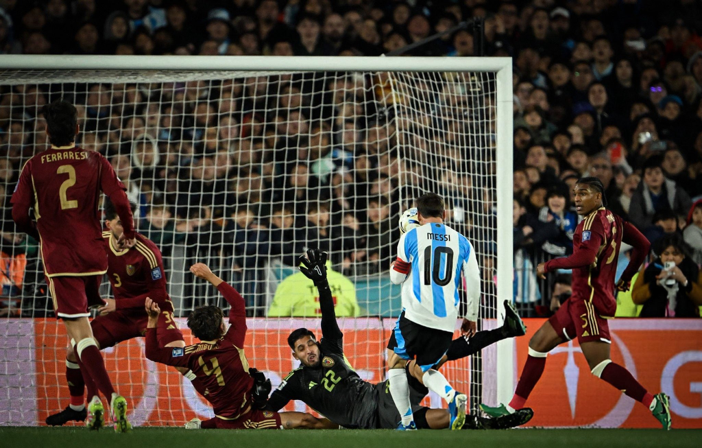 Desde el arranque, la Selección de Scaloni domina el juego: asociaciones precisas, posesión constante y llegadas peligrosas que inquietan a la defensa venezolana. Messi aparece por izquierda, entra al área y con su magia habilita a Thiago Almada y luego a Nicolás González, aunque el arquero Romo responde con intervenciones decisivas.