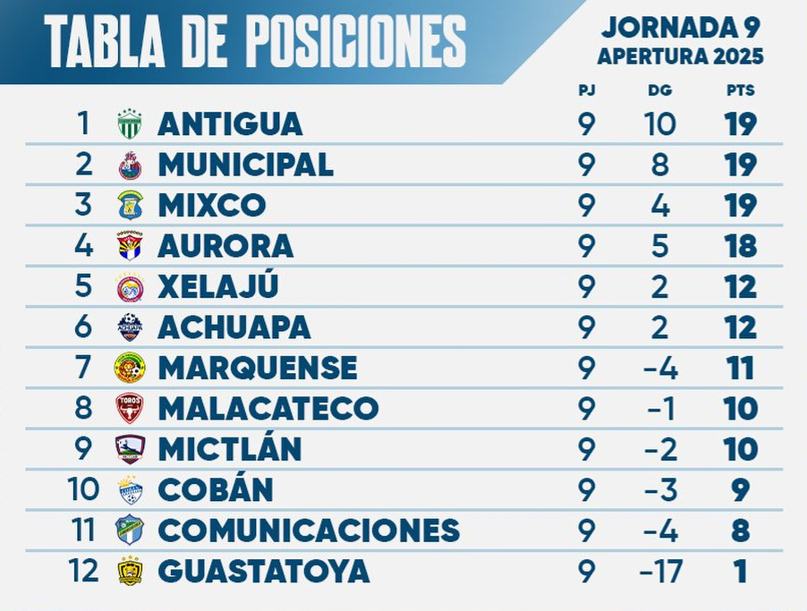 La lucha por el primer puesto del Apertura está más encendida que nunca, y el “Mimado de la Afición” se perfila como uno de los grandes candidatos al título. Mientras tanto, Guastatoya sigue hundido en el fondo, con apenas un punto en nueve jornadas.