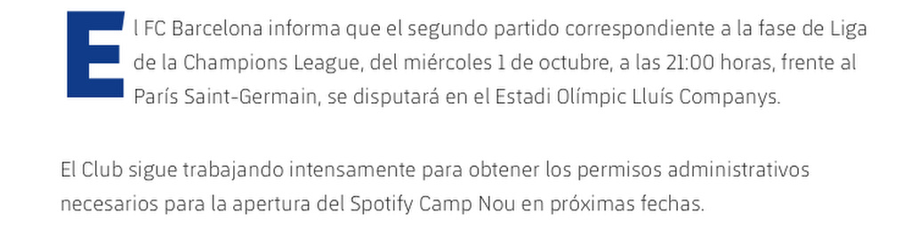 El plan inicial era estrenar el nuevo Camp Nou el 28 de septiembre ante la Real Sociedad, con un aforo limitado de 27 mil personas. Sin embargo, apenas tres días después no existían las condiciones logísticas para recibir a un rival del calibre del PSG, lo que obligó a extender la estancia en Montjuïc, con la opción de mantener el estadio hasta febrero.