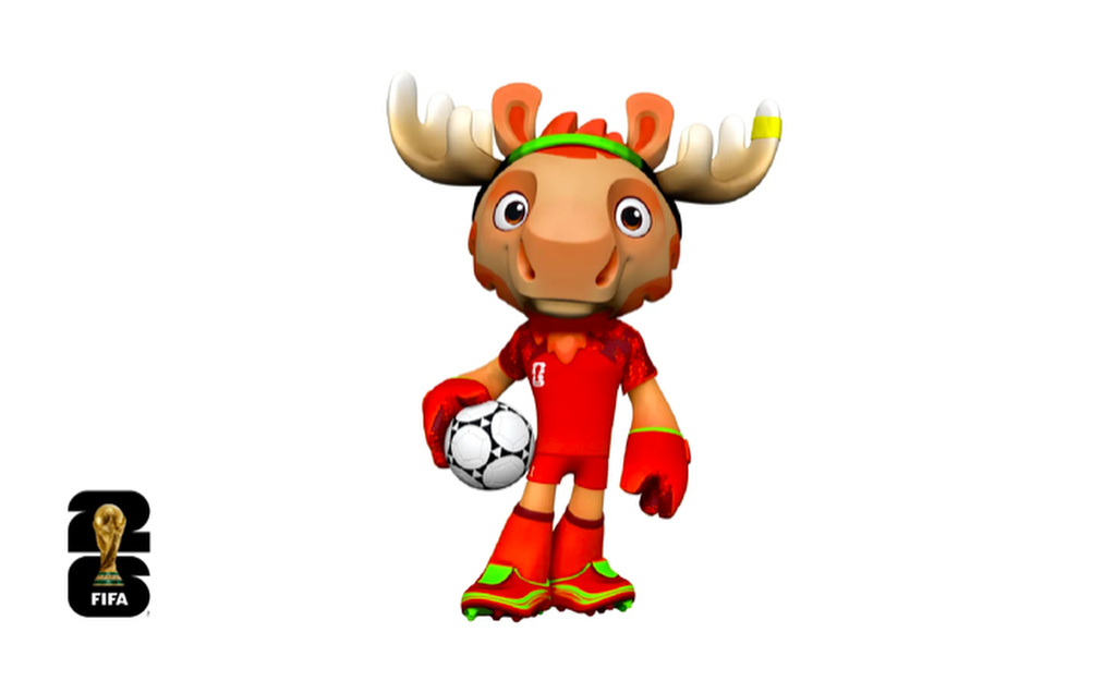 Cada una ocupa un rol en el campo: Maple, con guantes de arquero y la bandera roja de Canadá en el pecho, simboliza creatividad, resiliencia y espíritu único.