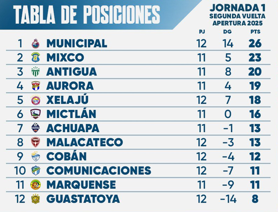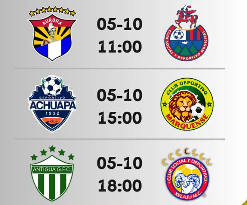 El domingo, la acción continúa con tres duelos que prometen alto voltaje: Aurora vs. Municipal (11:00), Achuapa vs. Marquense (15:00) y Antigua vs. Xelajú (18:00).