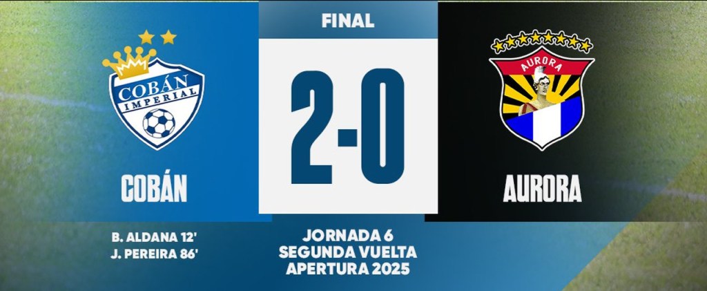 El domingo, Cobán Imperial aprovechó su localía y derrotó 2-0 a Aurora, escalando posiciones mientras los militares sumaron su sexta caída consecutiva.