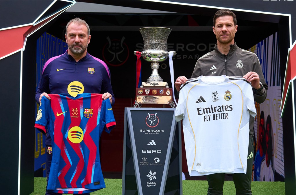 En Yeda, Arabia Saudí, Hansi Flick y Xabi Alonsoposaron juntos sobre el césped del King Abdullah Sports City Stadium, con las camisetas de Barcelona y Real Madrid y el trofeo como telón de fondo. La imagen resume lo que está en juego este domingo a las 13:00 horas (GT): más que un título, un mensaje para el inicio de 2026.
