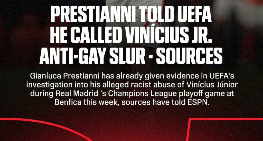 Prestianni reconoció haber llamado al delantero brasileño “maricón” y no “mono”, como se había denunciado inicialmente. Aunque la diferencia es importante en términos de tipificación, ambos actos están contemplados en la normativa de la UEFA como conductas discriminatorias, con posibles sanciones de al menos diez partidos.