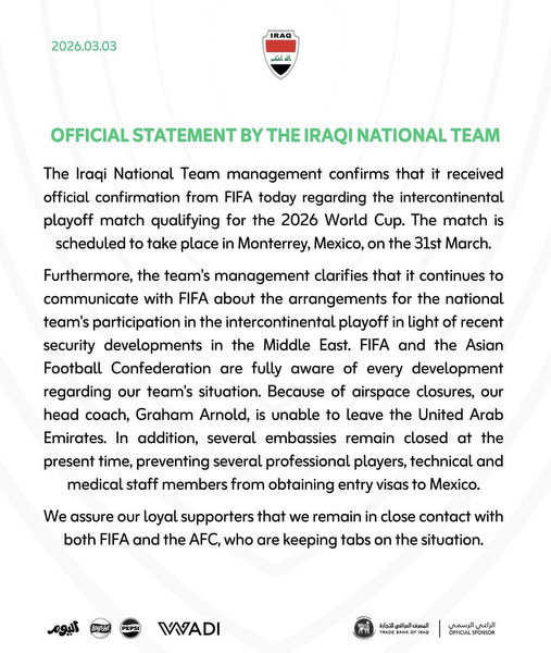 Sin embargo, el aumento de la tensión geopolítica en la región —marcada por recientes acciones militares y restricciones aéreas tras el conflicto entre Irán y Estados Unidos— ha complicado seriamente la planificación del equipo. Según Arnold, si el partido se mantiene en la fecha original, Irak podría verse obligado a competir con un plantel incompleto, integrado principalmente por futbolistas que militan en el extranjero.