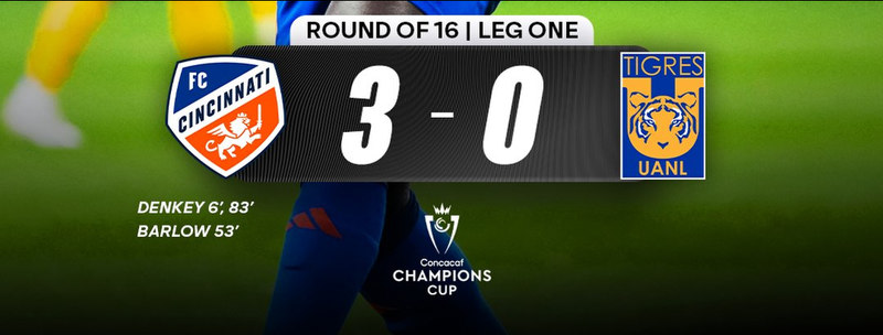 El FC Cincinnati firmó una noche perfecta y dio un golpe de autoridad en la ida de los octavos de final de la CONCACAF Champions Cup al derrotar 3-0 a Tigres UANL, dejando a los felinos al borde de una eliminación temprana.